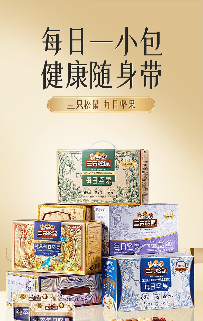 三只松鼠每日坚果750g/30包健康混合干果仁坚果零食礼盒节日送礼