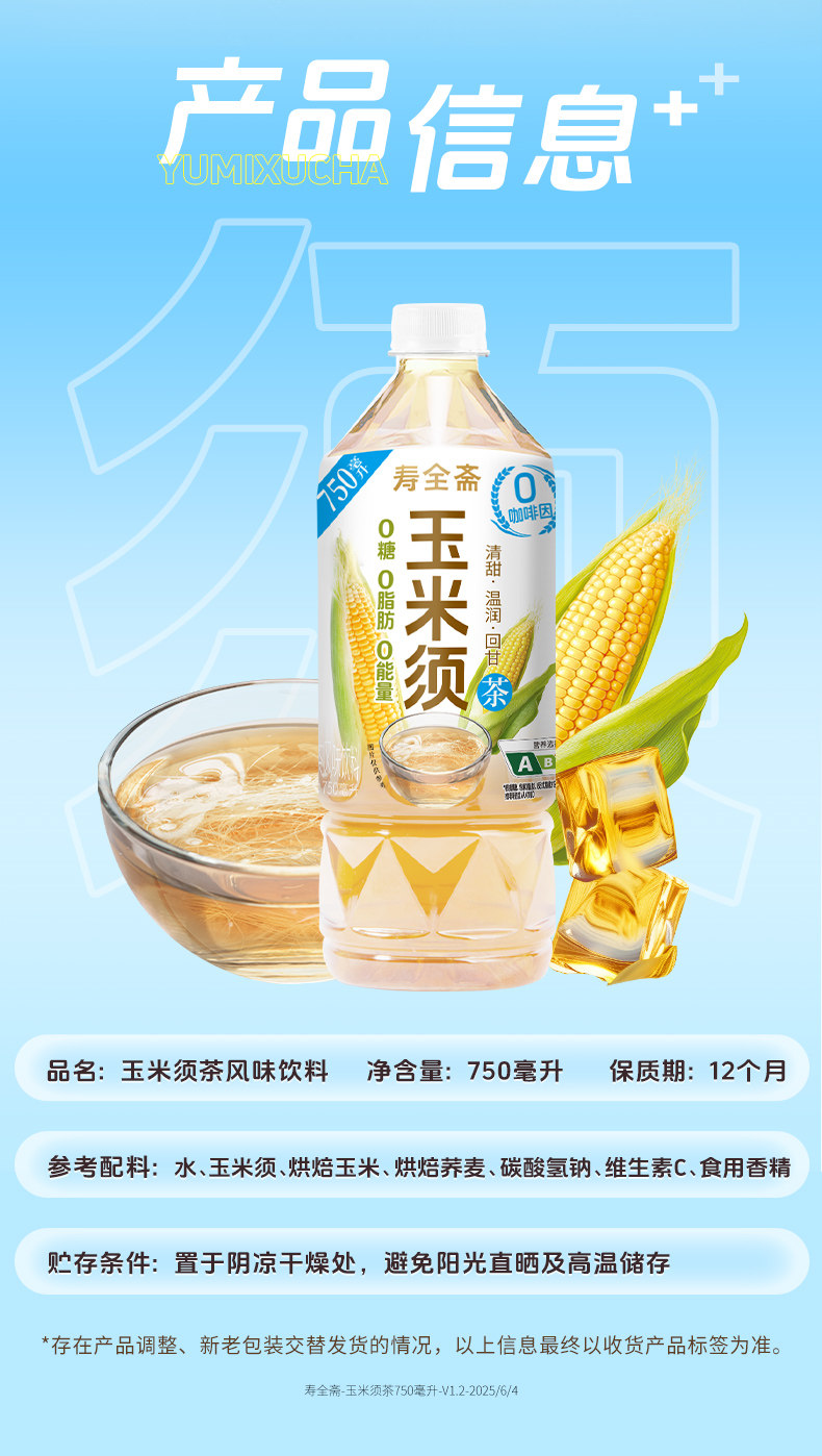 寿全斋玉米须茶饮料整箱大瓶无糖免煮荞麦茶植物饮料0糖0脂0能量